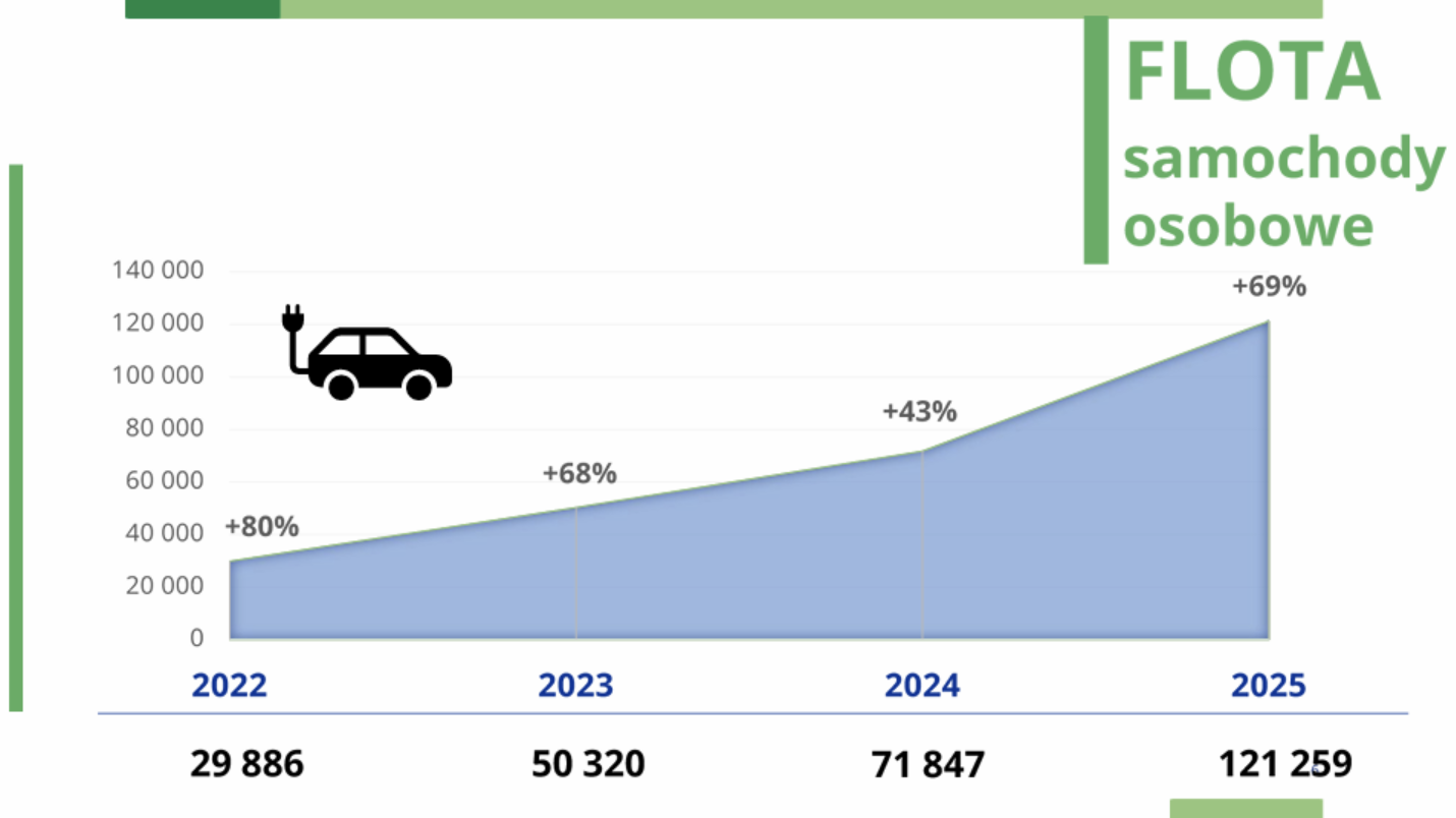 W ubiegłym roku w Polsce zarejestrowano 43,3 tys. samochodów elektrycznych – to 2,5 razy więcej niż rok wcześniej. Udział pojazdów BEV w rynku nowych samochodów wyniósł 7,2%, a jednocześnie uruchomiono cztery nowe programy wsparcia finansowego elektromobilności. Duże wzrosty odnotowano również w segmencie pojazdów dostawczych i ciężarowych. Flota elektrycznych samochodów dostawczych przekroczyła poziom 10 tys., a liczba ogólnodostępnych punktów ładowania wynosi już ponad 11,7 tys.